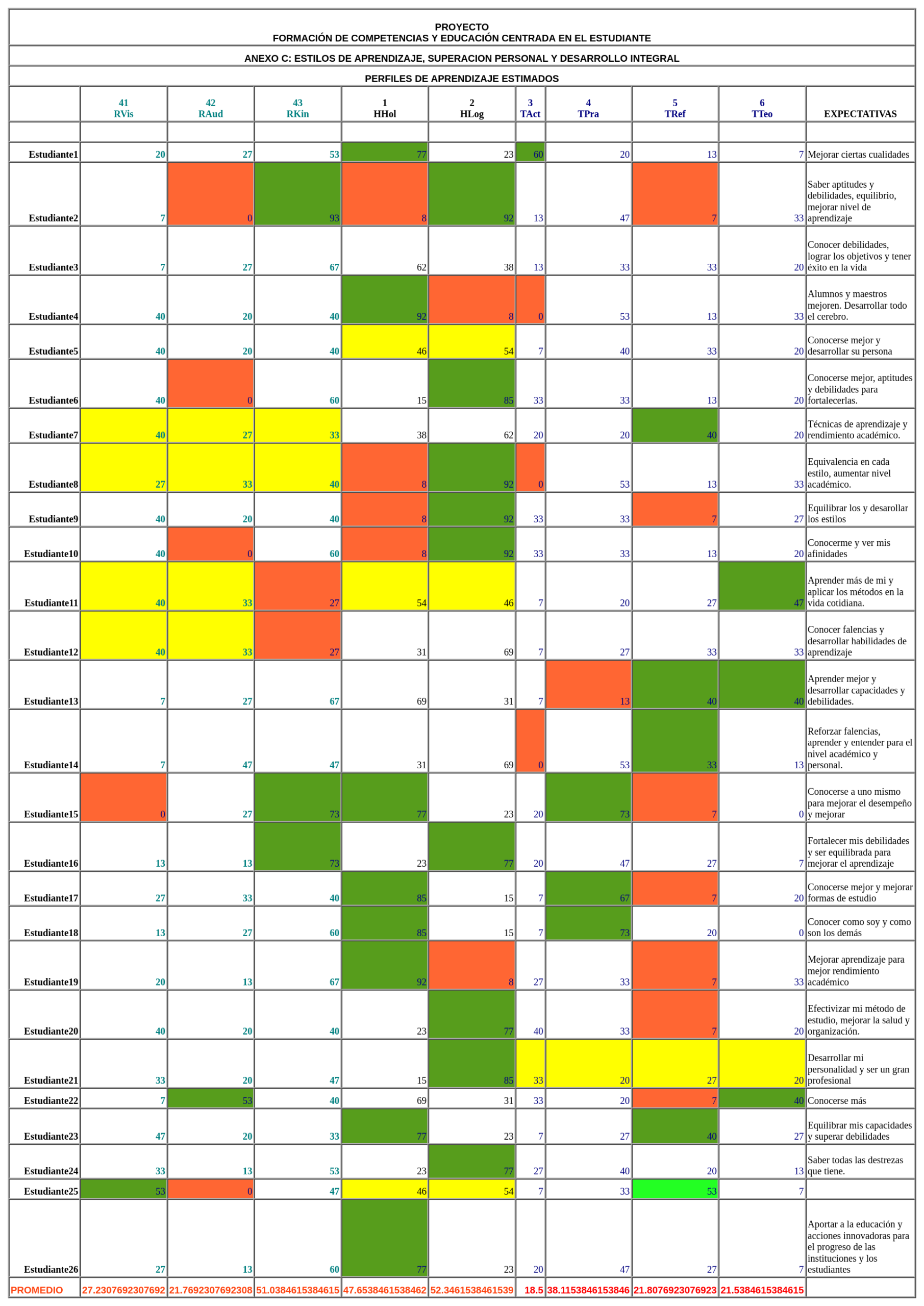 Anexo C.- Cuadro de perfiles de aprendizaje personalizados y expectativas de los estudiantes
