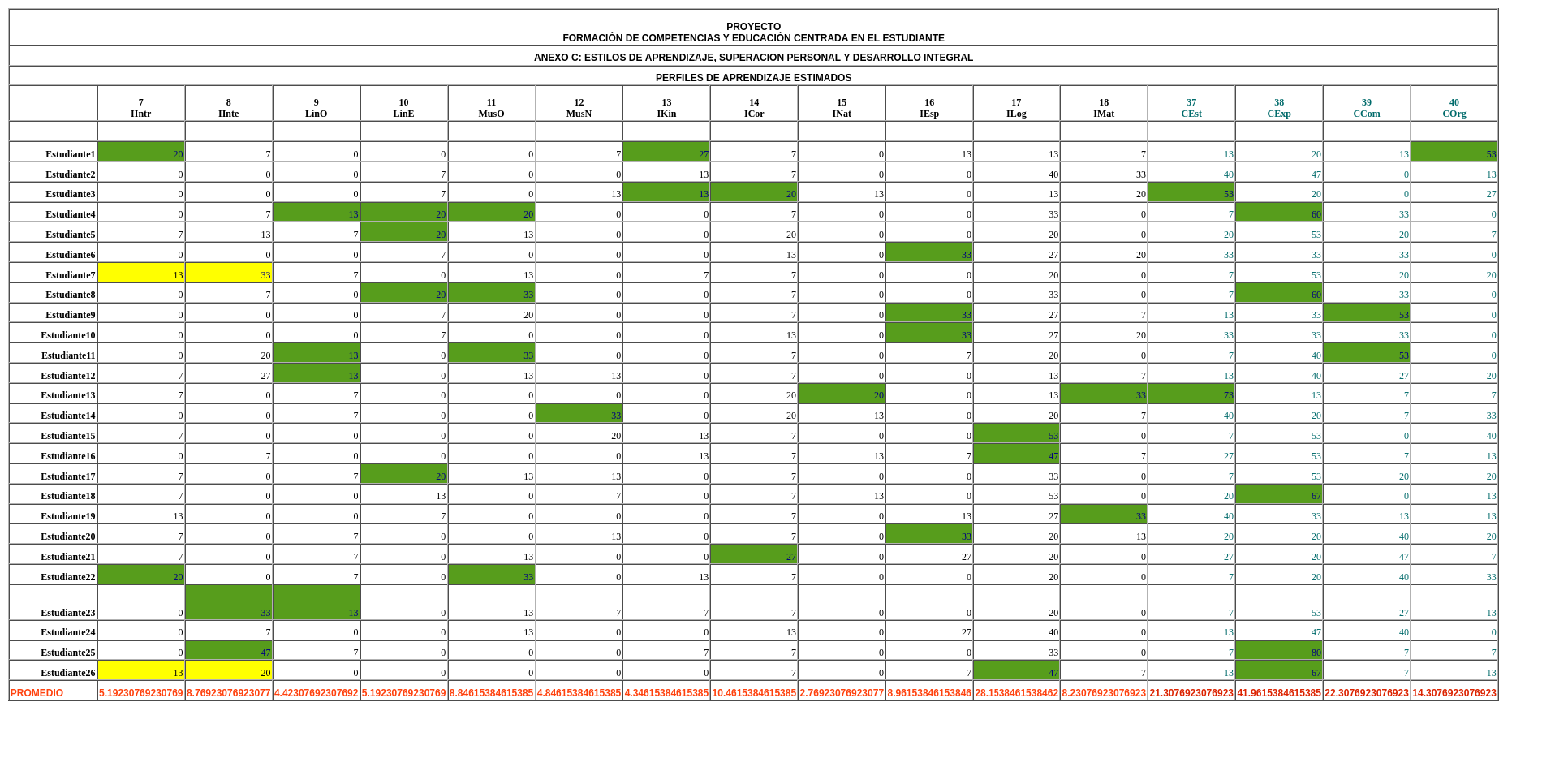 Anexo E2.- Evaluación del desarrollo personal y resultados de aprendizaje por estudiante